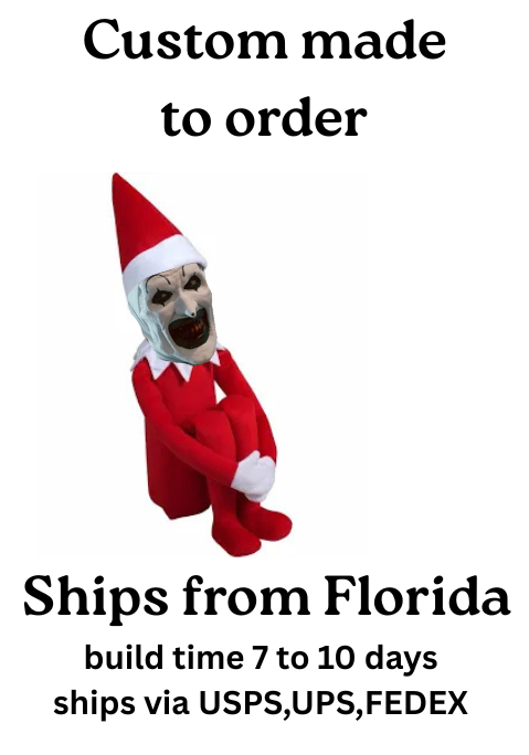These custom Art The Elf Dolls are all custom made with great attention to detail, from the resin head, face paint, rotten teeth to his garbage bag of goodies ( PLEASE ALLOW 7 TO 10 DAYS FOR PRODUCTION TIME) these are not cheap elf dolls from China.