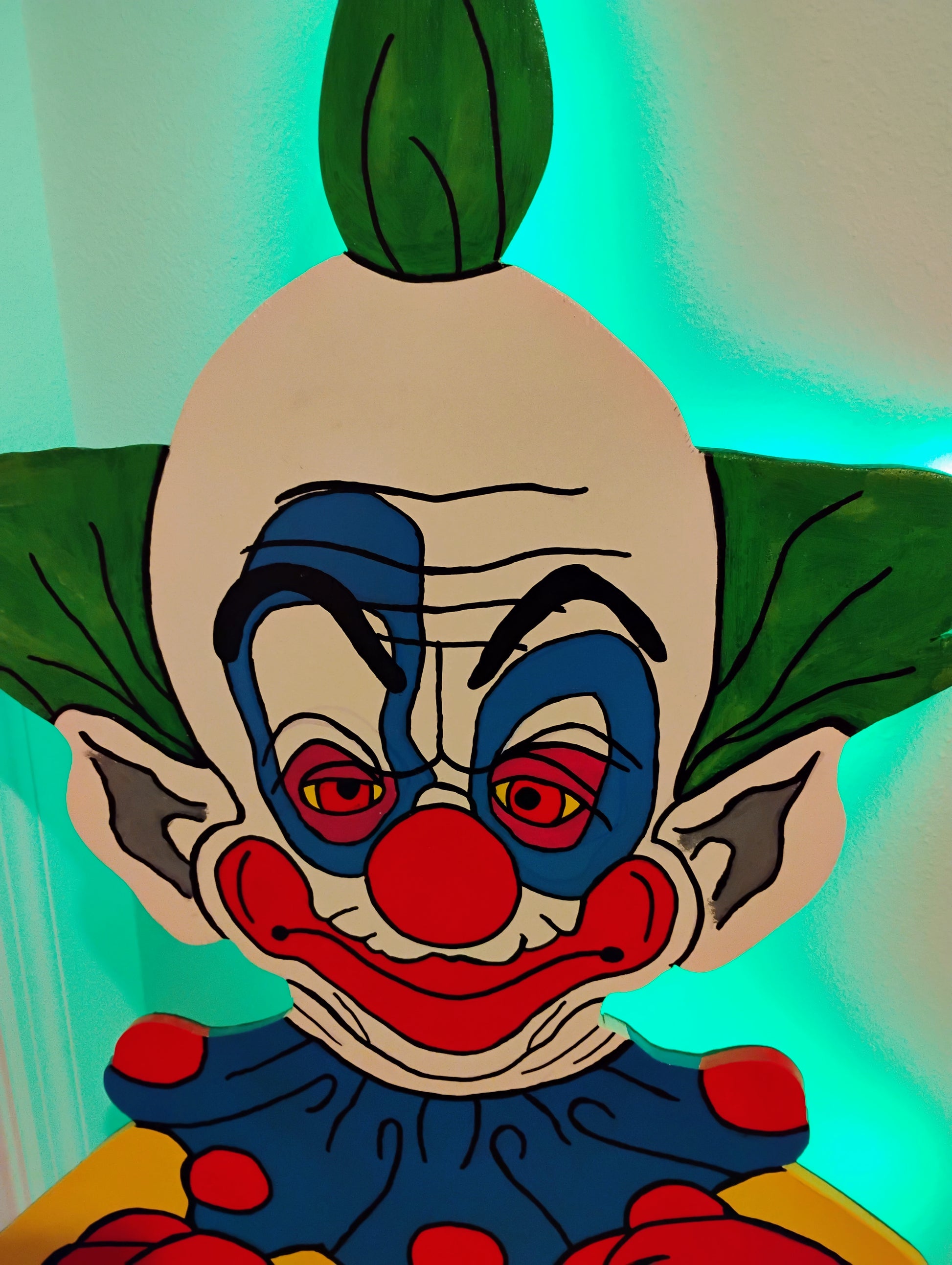 Custom wood horror characters height is 3 to 4 ft tall. Custom designs every piece is a 1 of 1 and comes with premium LEDs and remote. Hand painted. For a character I don't have listed you can send me a message and I will give you a price on that piece. Ships from Florida